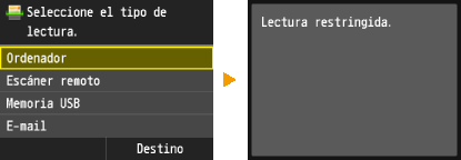 Si se selecciona la casilla de verificación, puede seleccionar <Ordenador> o <Escáner remoto> en la pantalla principal de escaneado y escanear documentos en un ordenador en cualquier momento. Desmarque la casilla de verificación para desactivar el escaneado incluso si <Ordenador> o <Escáner remoto> están seleccionados cuando se haya habilitado Gestión de ID de departamentos.