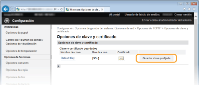 Haga clic en [Guardar clave prefijada] en la parte derecha del par de claves que desee utilizar.