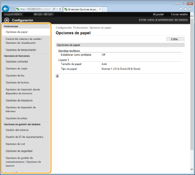 Puede cambiar la configuración en [Opciones de gestión del sistema] solo cuando inicie sesión en el modo Administrador del Sistema. |
