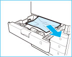 | 2 | Extraiga suavemente el papel del casete. Puede haber papel atascado en otro lugar distinto al casete de papel mostrado en la imagen. Extraiga todos los casetes y compruebe si tienen papel atascado. |
