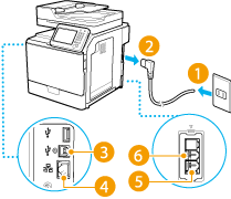 Desconecte los cables y el cable de alimentación del equipo en el orden numérico que se indica en la siguiente ilustración.
