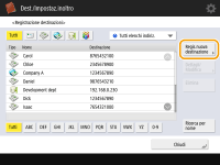 Se il server LDAP è già stato registrato nella macchina (Registrazione del server LDAP), è possibile cercare le destinazioni e registrarle nella Rubrica. Premere <Dest./Impostaz. inoltro> <Registrazione destinazioni> <Regis.nuova destinazione> <Registrazione da server LDAP> e cercare le destinazioni tramite <Ricerca per condizioni> o <Ricerca per nome>.Quando il nome utente e la password sono corretti, ma il risultato della ricerca è vuoto, verificare l'impostazione dell'ora sul server LDAP e sulla macchina. Se la differenza di ora tra il server LDAP e la macchina è pari o superiore a cinque minuti, è impossibile effettuare una ricerca. Se nei risultati di ricerca sono visualizzate più destinazioni, è possibile registrarne fino a 256 contemporaneamente. Le informazioni che è possibile ottenere tramite il server LDAP consistono di soli nomi e numeri di fax/indirizzi. Registrare altre informazioni da <Dettagli/Modifica> in base alle esigenze. Non è possibile ricercare destinazioni su un server LDAP dal pannello di controllo e dalla UI remota contemporaneamente. Quando si cercano destinazioni su un server LDAP dal pannello di controllo della macchina, è possibile specificare quattro condizioni di ricerca. Tuttavia, quando si cercano destinazioni su un server LDAP dalla IU remota, è possibile specificare una sola condizione di ricerca. Potrebbe essere necessario inserire il nome utente e la password. Inserire il nome utente e la password della macchina registrata nel server LDAP, se le informazioni di autenticazione non vengono utilizzate, effettuare la ricerca lasciando i campi nome utente e password della IU remota vuoti. Specificando/registrando le destinazioni dalla cronologia di invioÈ possibile specificare destinazioni e registrare destinazioni nella Rubrica dalla cronologia di invio nella schermata <Monitoraggio stato/Annulla>. In questo modo si risparmia tempo perché non occorre immettere direttamente l'indirizzo e si evita di inviare a una destinazione errata a causa di un errore di digitazione. Quando si specifica una destinazione: <Monitoraggio stato/Annulla> <Invio> <Registro lavori> selezionare la destinazione da inviare a <Specif. come destin. invio> <OK>Quando si registra una destinzione: <Monitoraggio stato/Annulla> <Invio> <Registro lavori> registra la destinazione dalla schermata di registrazione per ciascun tipo di destinazione |