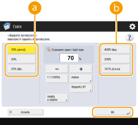 ![]() | È possibile ingrandire o ridurre per adeguare automaticamente il formato carta selezionato. Ingrandimento o riduzione delle copie in base al formato carta |