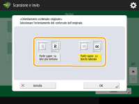 ![]() | È possibile specificare l'orientamento orizzontale o verticale di un originale sul vetro di lettura o nell'alimentatore. |