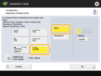 1 | Selezionare <OOXML> <Word>.![]() ![]() Per modificare una lingua da usare per l'OCR, premere <Cambia> selezionare una lingua o un gruppo di lingue premere <OK>.Selezionare una lingua o un gruppo di lingue in base alla lingua usata nei documenti acquisiti. |