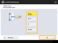 Wenn <Immer definieren> unter <Standard Mehrzweckfach> auf <Bevorzugtes Papier> festgelegt ist, wird ein Bildschirm angezeigt, in dem Sie Ihr "Favoritenpapier" auswählen können, wenn Sie Papier in das Mehrzweckfach einlegen. <Standard Mehrzweckfach> |