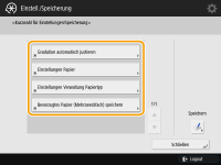 Zur einfacheren Verwendung von Hauptmenü und Grundfunktionsbildschirm der jeweiligen Funktion können Sie den Bildschirm durch Neuanordnung der Schaltflächen oder Anlegen von Schnellschaltflächen anpassen. Darüber hinaus können Sie effizienter arbeiten, wenn Sie das Expressmenü verwenden, um häufig verwendete Funktionen zu registrieren, oder die persönlichen Einstellungen, um die Betriebsumgebung an Ihre Wünsche anzupassen.