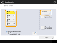 Si no se muestra el tipo de papel cargado, pulse <Opciones detallad.> para seleccionarlo de una lista.