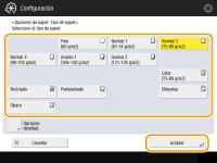 Seleccione el tipo de papel y pulse <Aceptar>.
