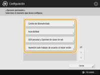Puede crear un acceso directo a cualquier elemento de la configuración que aparezca pulsando en  (Configuración). Si utiliza con mucha frecuencia un mismo elemento de la configuración, podrá utilizar el acceso directo a dicho elemento y así cambiar de pantalla rápidamente.
