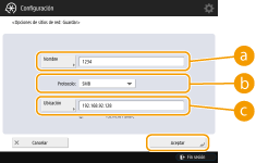 Introduzca la información necesaria y pulse <Aceptar>.