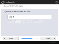 Especifique las opciones necesarias para utilizar la función de fax. ![]() Seleccione el país/región si aparece la pantalla de selección, y pulse <Siguiente>. ![]() ![]() Introduzca el número de fax y pulse <Siguiente>. Para obtener información sobre las opciones del fax, consulte Opciones de línea de fax. ![]() ![]() Pulse <Establecer>, introduzca el nombre de usuario y pulse <Siguiente>. ![]() ![]() Seleccione el tipo de línea y pulse <Aceptar>. | |