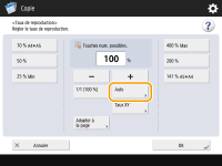![]() | Vous pouvez automatiquement agrandir ou réduire les documents au format du papier sélectionné pour la copie. Agrandir ou réduire les copies au format du papier |