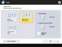![]() | Vous pouvez copier des originaux recto sur les deux faces d'une feuille de papier. Vous pouvez également copier un original recto verso sur les deux faces d'une même feuille ou encore sur deux feuilles différentes. Copie recto sur recto verso Copie recto verso sur recto verso Copie recto verso sur verso |