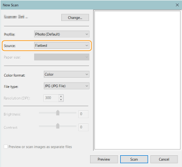 Quan col·loqueu l'original al vidre, seleccioneu [Flatbed]. Quan el col·loqueu a l'alimentador, seleccioneu [Feeder (Scan one side)].