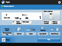 Zde jsou uvedena tlačítka, s jejichž pomocí se vyvolají základní funkce stroje. Jsou-li k dispozici tlačítka, která se na obrazovku nevejdou, stisknutím šipek  a umístěných v dolní části obrazovky přepněte displej. Tlačítka zobrazená na displeji se mohou lišit v závislosti na nainstalovaných volitelných doplňcích.