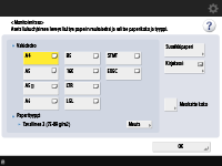 Kun muutat paperikoon, muuta paperikokomerkintä tarpeen mukaan (Asianmukaisen paperikokotarran kiinnittäminen). Huomaa, että paperikokotarrassa saattaa olla paperikokoja, jotka eivät ole käytettävissä laitteen kanssa.