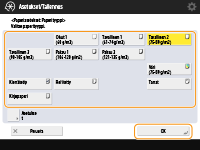 Valitse paperikasetti, johon on lisätty vakiokokoista paperia, jota ei voida tunnistaa, ja valitse <Tuntematon Vakiokoko>.