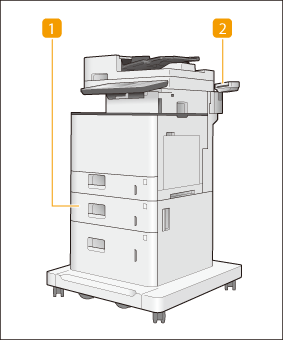 Zainstalowanie High Capacity Cassette Feeding Unit-D pozwala dodać szufladę na papier o standardowej pojemności oraz szufladę na papier o dużej pojemności.