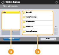 Naciśnij przycisk  (Ustawienia/Rejestracja), aby wyświetlić ekran <Ustawienia/Rejestracja>. Naciśnij na ten klawisz, aby wprowadzić zmiany dla poszczególnych ustawień, takich jak ustawienia papieru, wyświetlania lub sieci. Z poziomu tego ekranu można również zarejestrować odbiorców (adresy e-mail lub numery faksów).