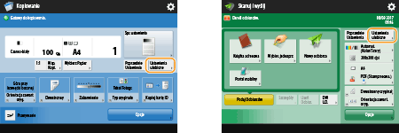 Możesz zmienić przyciski ustawień wyświetlane na ekranach Podstawowych funkcji (dla kopiowania, faksowania i skanowania). Istnieje również możliwość wyświetlania innego, spersonalizowanego ekranu Podstawowych funkcji dla każdego zalogowanego użytkownika.