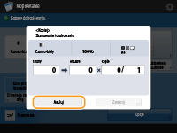 (Stop) na panelu sterowania, gdy zadania kopiowania mają status oczekujących, wszystkie te zadania kopiowania zostaną wstrzymane i wyświetlony zostanie komunikat <<Stop>Wybierz zadanie kopiowania, które chcesz anulować.> wraz z listą zadań kopiowania. Możesz wybrać zadanie kopiowania z listy i anulować to zadanie naciskając na <Anuluj>. Aby wznowić kopiowanie, naciśnij na <Wznów kopiowanie>. |