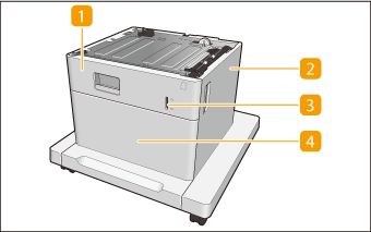 Permite adicionar uma gaveta para papel. A colocação de papel de formatos diferentes na gaveta para papel opcional reduz o trabalho da mudança de papel. Além disso, disponibiliza espaço de armazenamento.