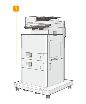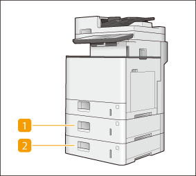 A instalação do High Capacity Cassette Feeding Unit-D permite adicionar uma gaveta para papel de capacidade padrão e uma gaveta para papel de capacidade superior.