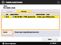 (Parar) no painel de controlo, o trabalho é efetuado.Para obter instruções sobre como cancelar trabalhos a partir do ecrã <Cópia> ou do ecrã <Fax>, consulte Cancelar a cópia ou Cancelar o envio de faxes.
