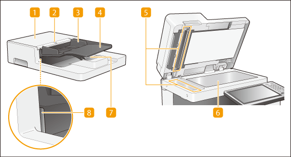 Limpe o alimentador e o vidro de exposição regularmente para obter os melhores resultados de impressão. Limpeza regular