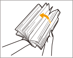 Imprimir no verso de papel impresso (verso de uma página frente e verso)Pode imprimir no verso de papel impresso. Alise as áreas enroladas do papel impresso e introduza-o no tabuleiro multifunções, com o lado a imprimir voltado para baixo.