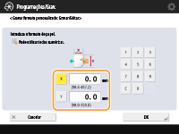 Especifique o comprimento do lado <X> e do lado <Y>. Carregue em <X> ou <Y> para introduzir o comprimento de cada lado com as teclas numéricas.