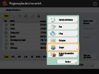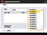 (correio eletrónico), (fax), (I-fax) ou (ficheiro) para filtrar os destinos apresentados na lista de endereços ( ). Carregue em <Tudo> para apresentar todos os destinos gravados. Destino