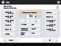 Pode utiliz. teclas numéricas.>, pode introduzir valores numéricos utilizando as teclas numéricas no painel de controlo.Exemplo: Ecrã de programação <Rácio de cópia>