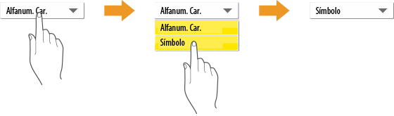 Carregue num botão em que  esteja à direita para apresentar a lista suspensa. Carregue no item de uma lista para selecionar um item.