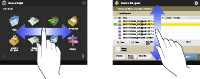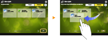 Em alguns ecrãs, pode mudar de página ou deslocar-se deslizando o dedo para cima/baixo ou para a esquerda/direita no ecrã, tal como faria com um smartphone.