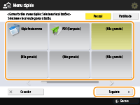 para apresentar o Menu rápido e, em seguida, carregue em <Pessoal> ou <Partilhado>.