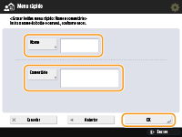 Se selecionar <Inform. autentic. início sessão do dispositivo> para <Informação usada p/autentic. TR. ficheiro/procura>, não é guardada qualquer password para um destino de ficheiro num botão Pessoal/botão Partilhado no ecrã Menu rápido. <Informação usada p/autentic. TR. ficheiro/procura>