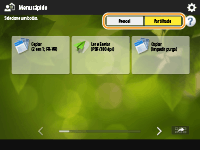 Atalhos para o ecrã das funções básicas das funções <Imprimir>, <Scanner>, <Caixa de fax/I-fax> e <Portal Móvel>