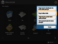 Pode criar um botão de atalho para as funções no ecrã <Menu principal>. Utilize este botão para aceder a uma função diferente sem voltar ao ecrã <Menu principal>. Para criar um atalho, inicie sessão com privilégios de administrador.