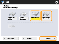 É possível encadernar cada cópia com o agrafador após uma impressão por ordenação ou agrupamento.