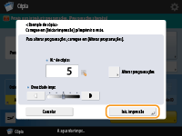 Carregue em <Inic. impressão> para imprimir o número de cópias especificado. Se tiver selecionado <Todas as páginas> no passo 5, será impresso o número de cópias menos uma. Se tiver selecionado <Páginas especificadas> no passo 5, será impresso o número total de cópias.