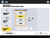 Se pretender ajustar a largura de cada rebordo de modo independente, carregue em <Apagar moldura do original> ou em <Apg moldura do livro> e, em seguida, carregue em <Ajustar livremente> para introduzir as larguras a apagar.