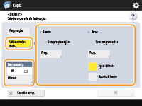 Se pretender deslocar a imagem no verso ao copiar ambos os lados, será necessária a programação <Verso>. Para o deslocamento para a mesma posição da frente, carregue em <Igual à frente>. Para um deslocamento simétrico, carregue em <Oposto à frente>. Para o deslocamento para uma posição diferente da frente, carregue em <Prog.> e introduza a distância de deslocamento.
