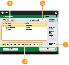 Selecionar o nome de um remetenteNo ecrã das funções básicas de fax, carregar em <Opções>