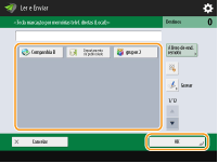Para verificar o número total de destinos especificados.O número total de destinos especificados é mostrado no topo superior direito do ecrã. Isto permite-lhe confirmar que o número de destinos está correto antes de enviar.