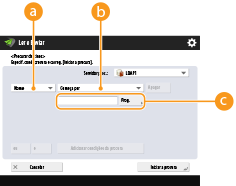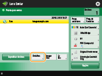 Para verificar os estados dos documentos enviadosNo ecrã <Controlo estado/Cancelar>, pode verificar os estados dos documentos enviados. Este ecrã permite enviar faxes novamente ou cancelar o envio após a verificação dos estados. Verificar o estado e o registo de documentos enviados e recebidos