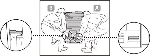 Ao mudar a máquina de local, segure-a devidamente, como mostrado nas imagens seguintes. Se segurado indevidamente, a máquina pode cair, causando ferimentos.