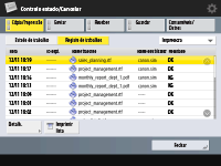 (Programações/Gravação) <Progs de gestão> <Gestão do dispositivo> <Restringir acesso a trabalhos de outros utilizadores> estiver definido como <Ligado>, os trabalhos, que não os do utilizador com sessão iniciada, são apresentados como "***" e não podem ser controlados. Se iniciar sessão com privilégios de administrador, os trabalhos de todos os utilizadores são apresentados. |