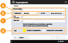 Selecione como lidar com os documentos que correspondam às condições. Quando seleciona a opção <Em esp. como trab. part.>, pode programar <ID de substituição> para especificar o nome de utilizador colocado no registo ao imprimir. Selecione <Cancelar> para descartar o documento.